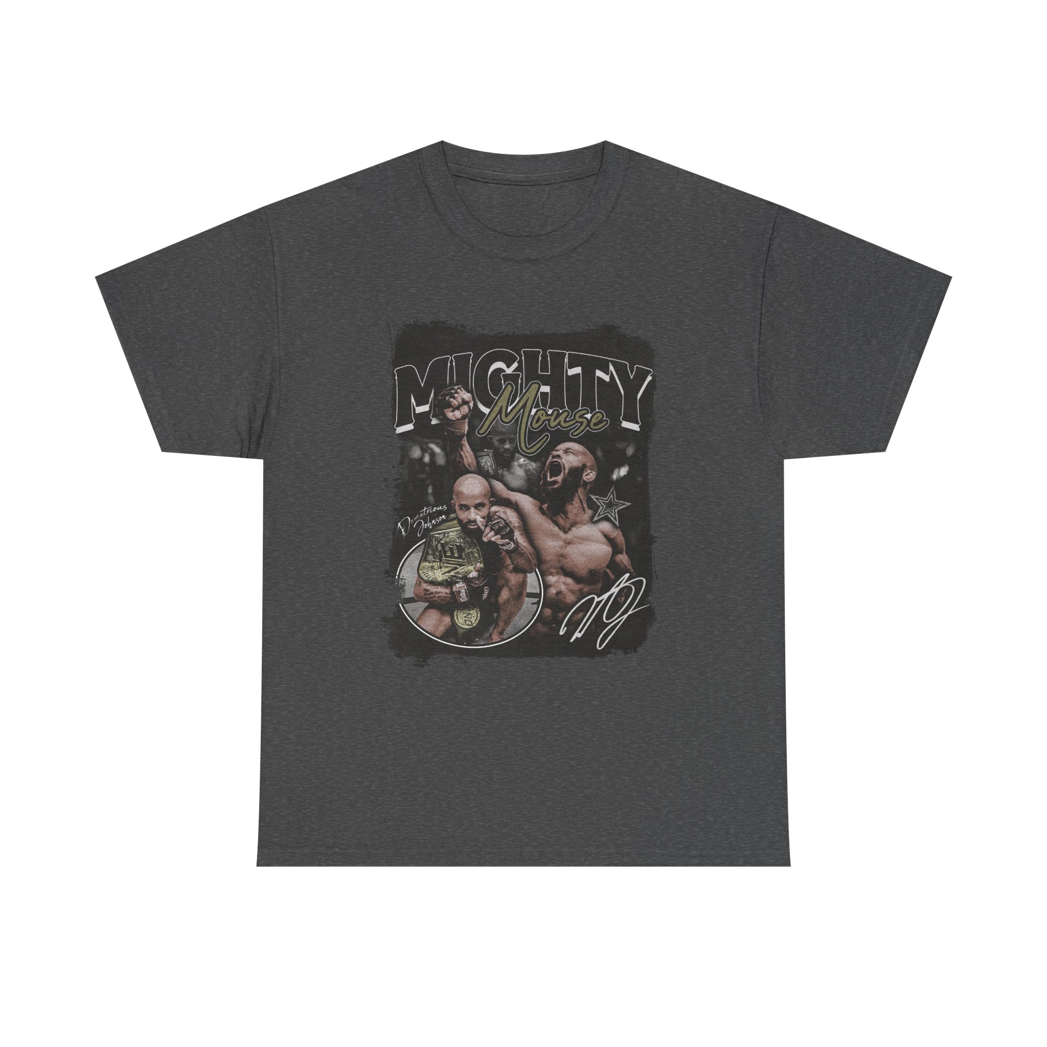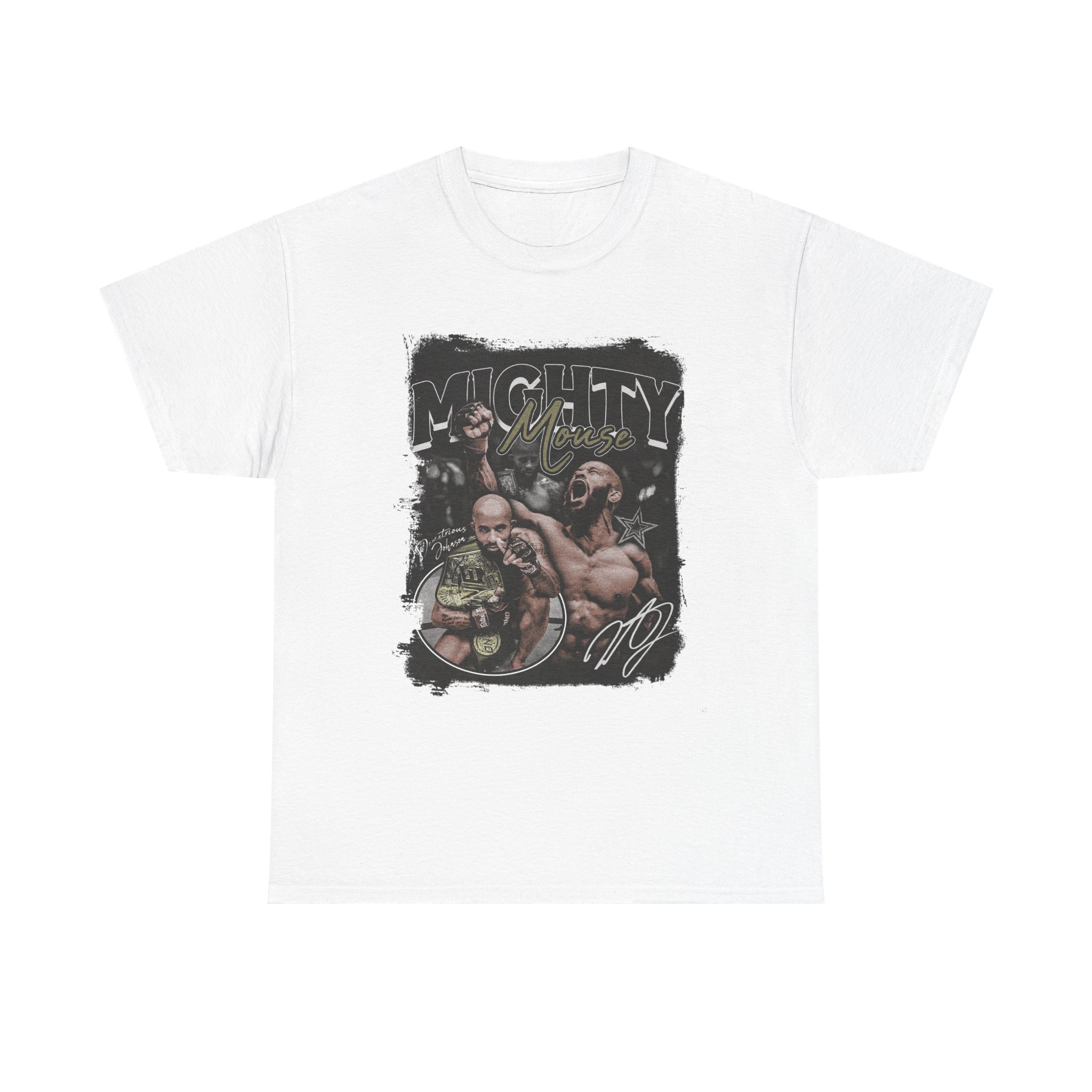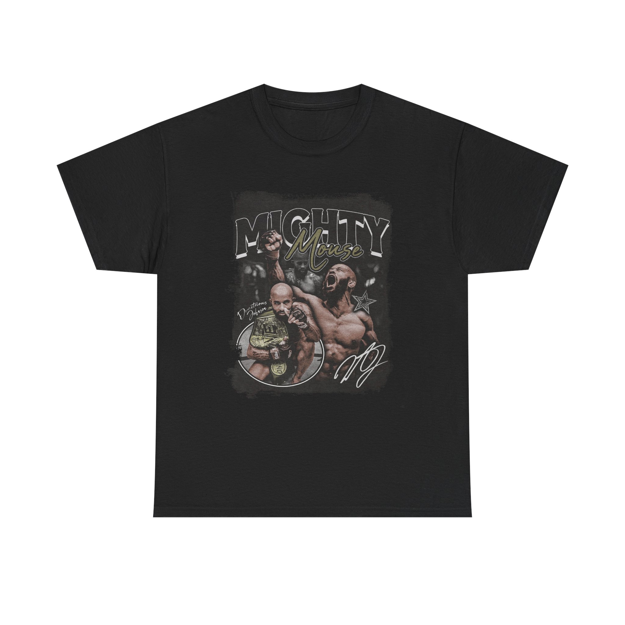 Celebrate the flyweight GOAT with this dynamic Demetrious “Mighty Mouse” Johnson tee. Featuring action shots, championship belts, and his signature across the design, this shirt highlights DJ’s technical brilliance and historic title reign. A perfect pick for fans who appreciate one of the most skilled fighters in MMA history.