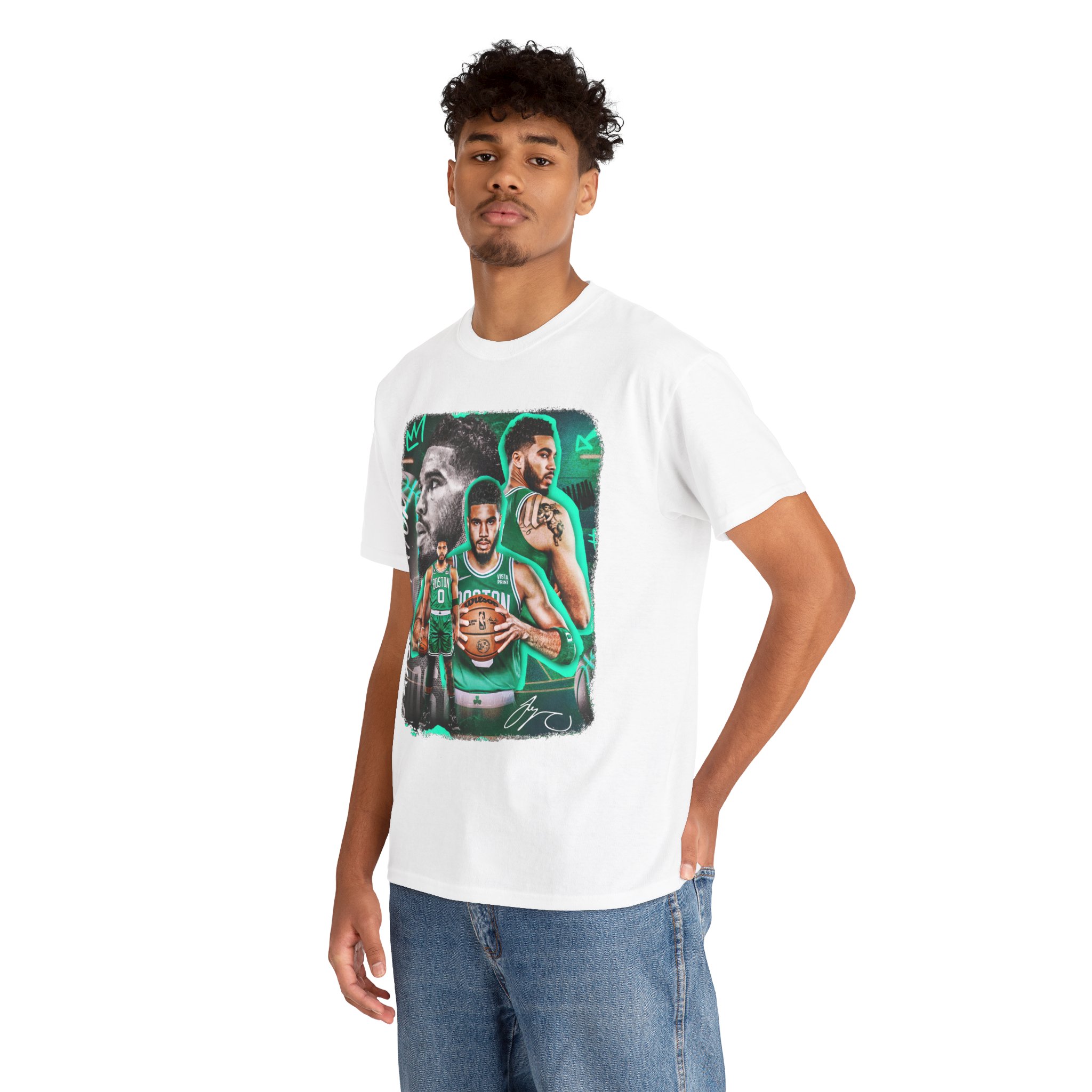 Step into greatness with this vintage-inspired basketball tee that captures the confidence, poise, and hunger of today’s rising stars. With vibrant green tones, glowing outlines, and striking collage artwork, this piece embodies leadership, precision, and legacy-in-the-making energy.