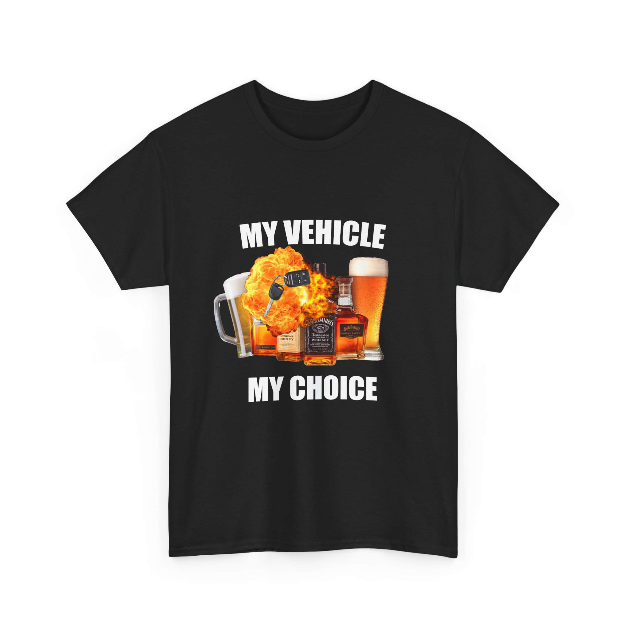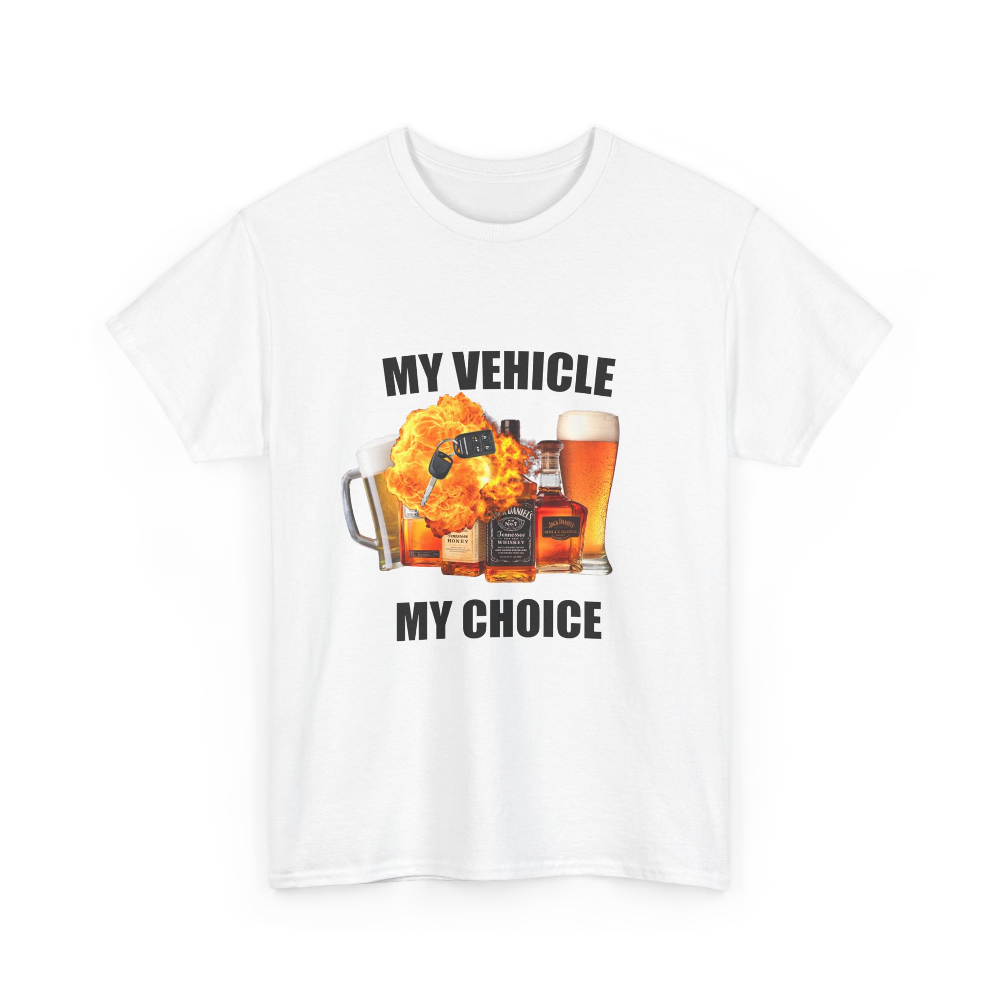 For those who know how to make questionable decisions in style, the My Vehicle, My Choice tee is here to remind everyone that while you may not have a license for driving, you’ve definitely got a license for drinking. This shirt features an array of alcohol bottles, giving a cheeky nod to the whole “drunk driving” culture—because why not joke about the things we definitely shouldn’t do?