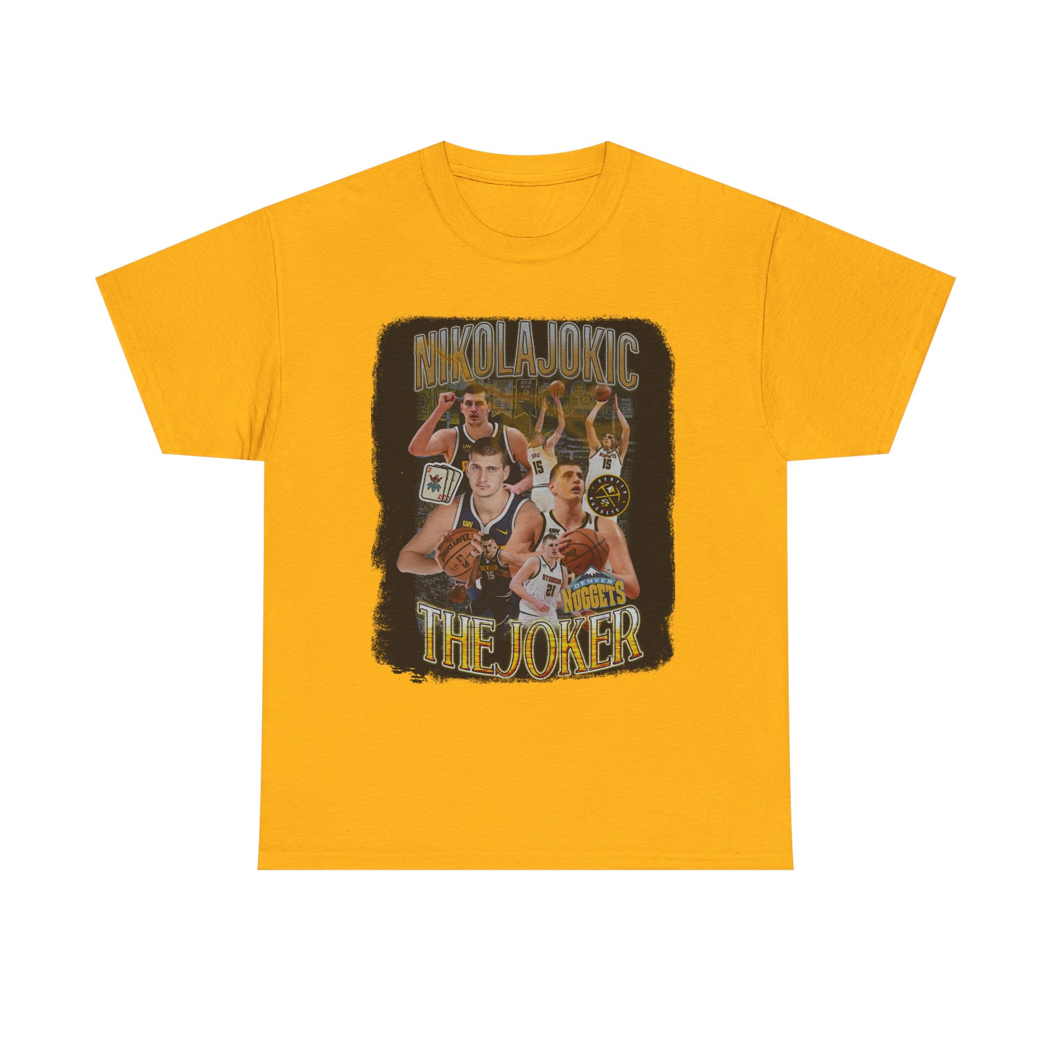 Deal yourself into greatness with this vintage-inspired basketball tee that celebrates the art of the game with flair, strategy, and skill. Featuring golden tones, playing-card graphics, and a dynamic collage design, this shirt embodies creativity, balance, and dominance — a tribute to the masterminds of modern basketball.