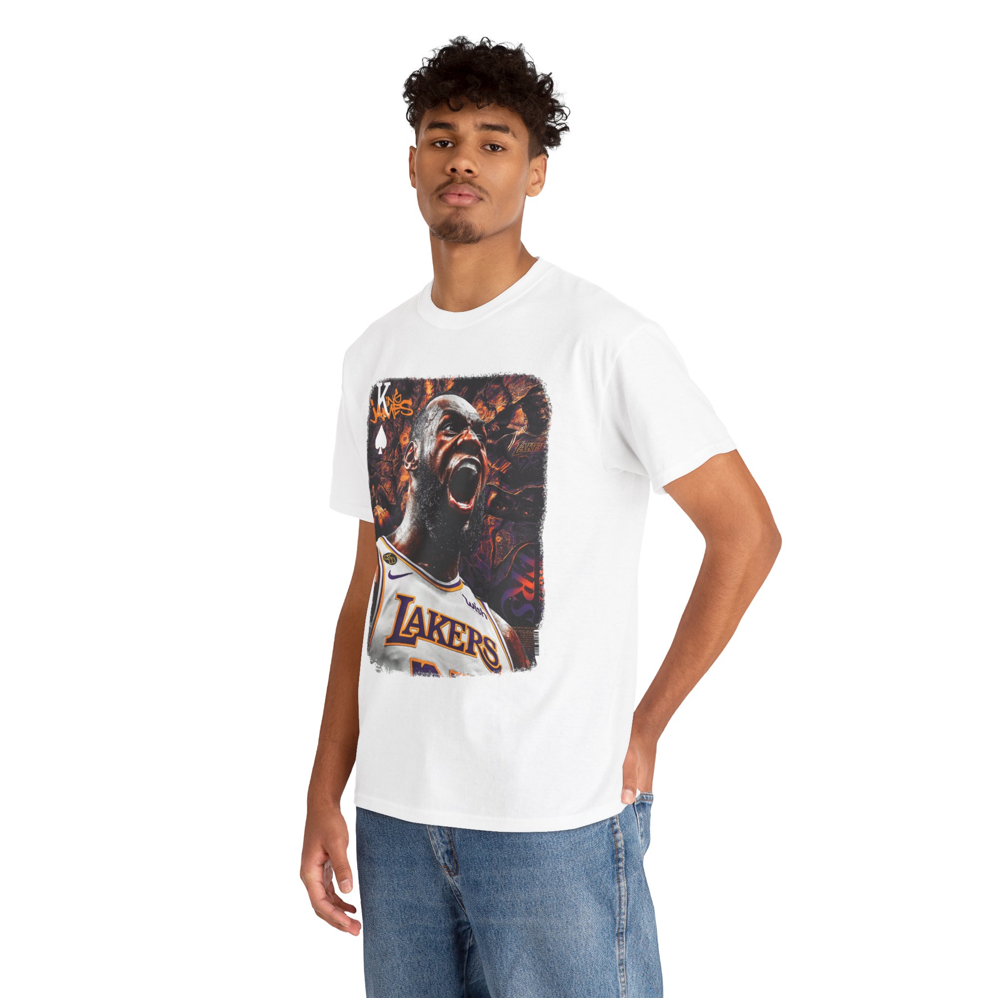 Command attention with this vintage-inspired basketball tee that captures the fire, dominance, and drive of modern legends. Featuring intense artwork, royal tones, and bold textures, this piece embodies leadership, power, and longevity — the traits that define the greatest to ever step on the court.